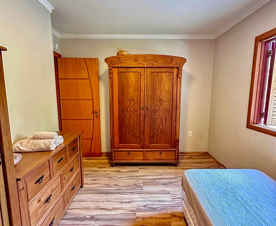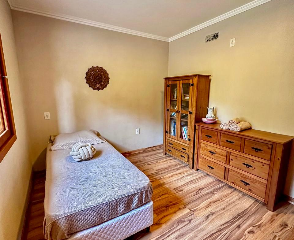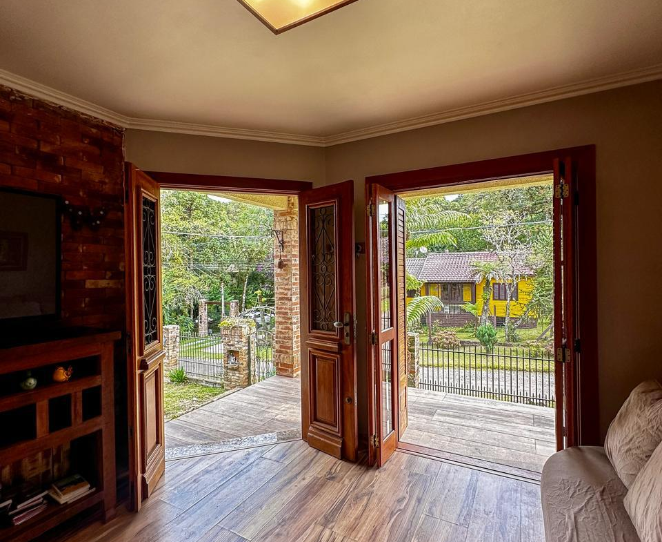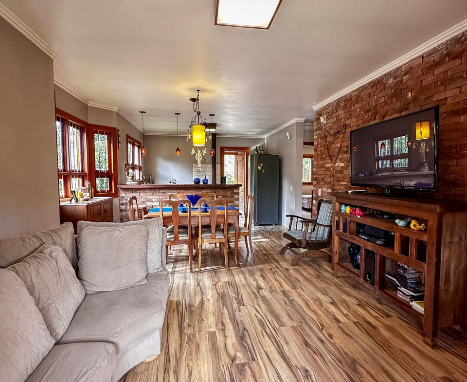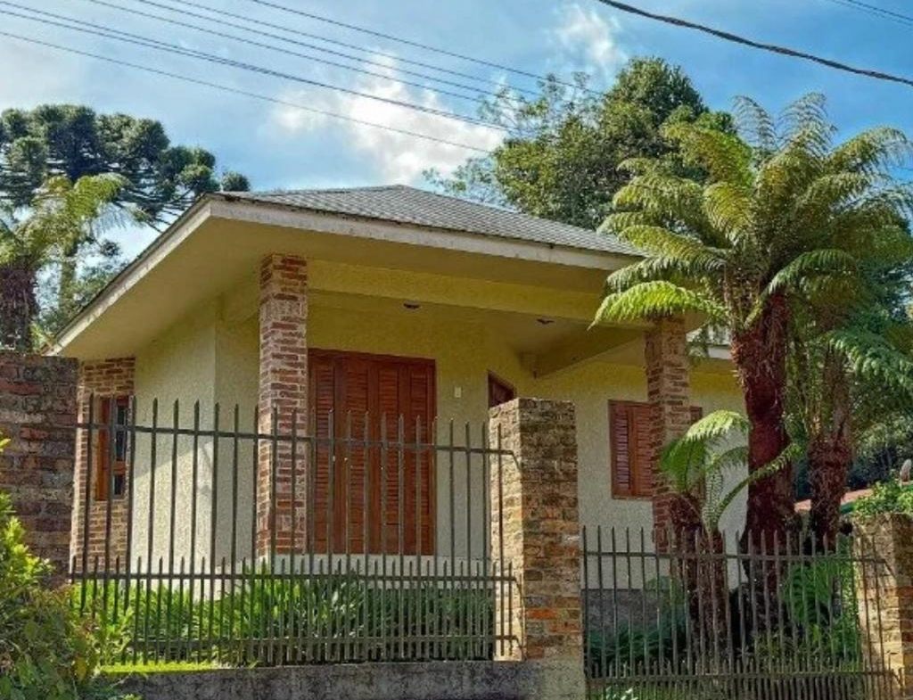 Essa casa linda oferece em 78m2 de puro charme, uma sala e cozinha integradas, 2 dormitórios, banheiro amplo, lavanderia, mobília rústica maravilhosa, ótimos iluminação natural nos cômodos, excelente posição solar, lote de esquina com 504m2, todo cercado.