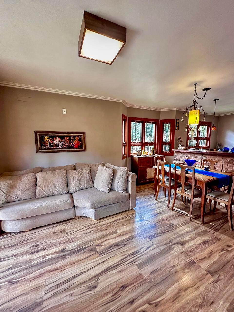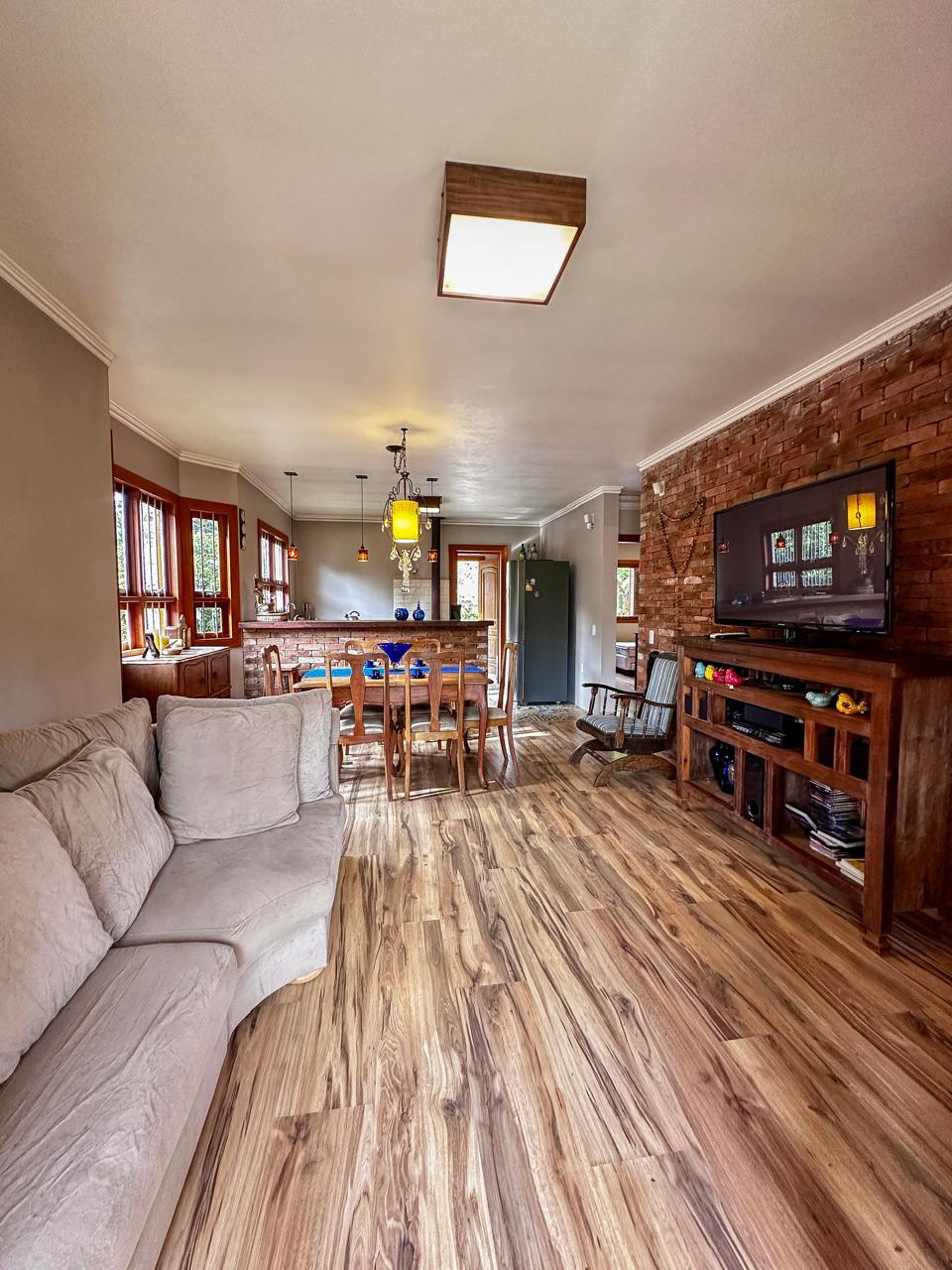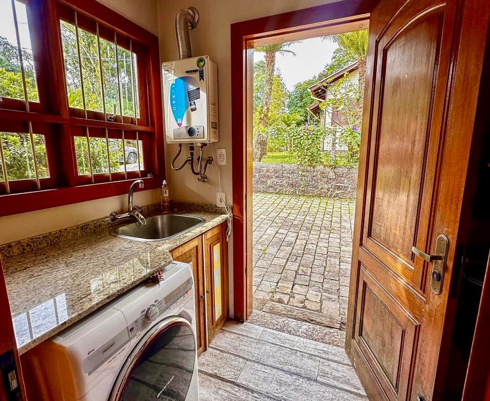 Essa casa linda oferece em 78m2 de puro charme, uma sala e cozinha integradas, 2 dormitórios, banheiro amplo, lavanderia, mobília rústica maravilhosa, ótimos iluminação natural nos cômodos, excelente posição solar, lote de esquina com 504m2, todo cercado.