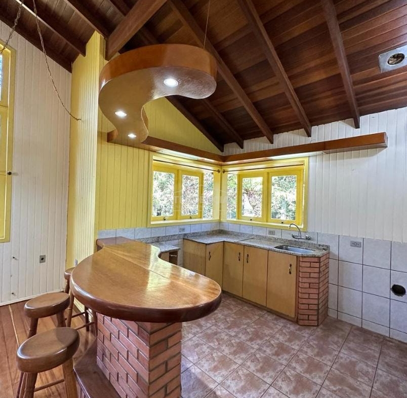Casa linda, aconchegante, acolhedora, com 172,58m2 de área construída, distribuída em 3 dormitórios (sendo 1 suíte), sala ampla, lareira e com pé direito alto, cozinha integrada a sala, lavanderia, banheiro social, no piso superior, garagem para 2 carros, churrasqueira, banheiro, acesso interno ao piso superior, água quente em todas as torneiras. Quiosque com churrasqueira para lazer em meio as árvores, ótima posição solar. A propriedade está localizada em um lote com 1.486m2, de muita natureza, ar puro e tranquilidade no bairro São Bernardo, lugar arborizado, ótima vizinhança, próxima ao lindissímo Lago São Bernardo, cartão postal de São Francisco de Paula.